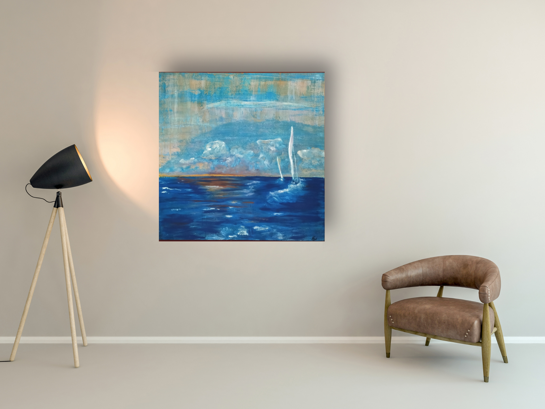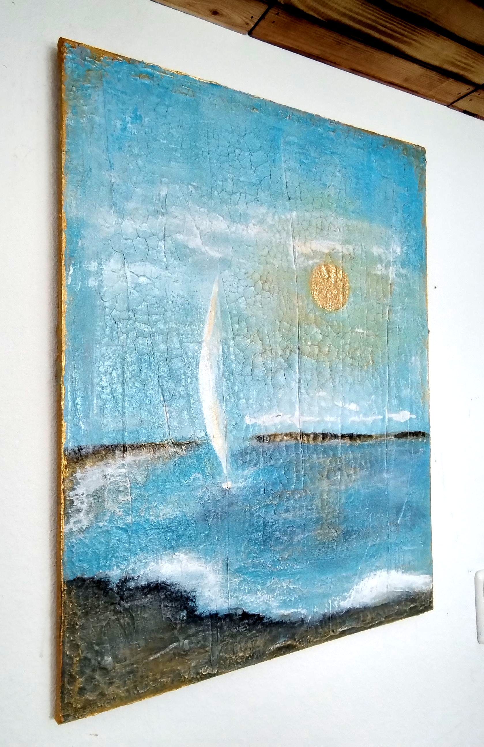 Die Sonne hier ist der Moment des Aufbruchs. Das weiße Segel im Wind, die Wärme des Goldes im Zenit, die Klarheit des Tages. Fokus.