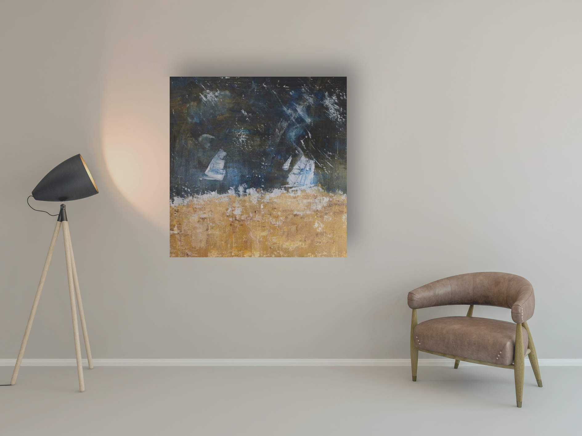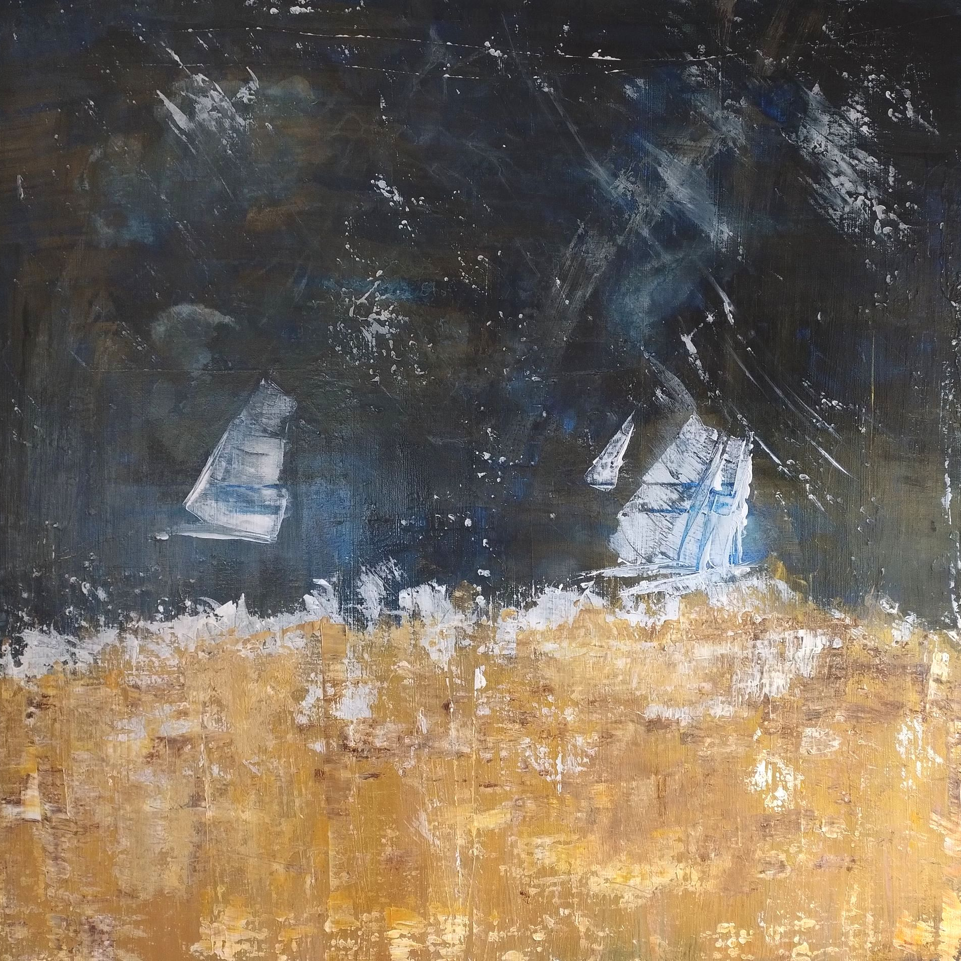 Im Segeln wie im Leben: Auch im Schietwetter gibt es schöne, goldene Momente. Der Druck basiert auf einem Foto meines Acryl-Bildes Regen-Regatta.