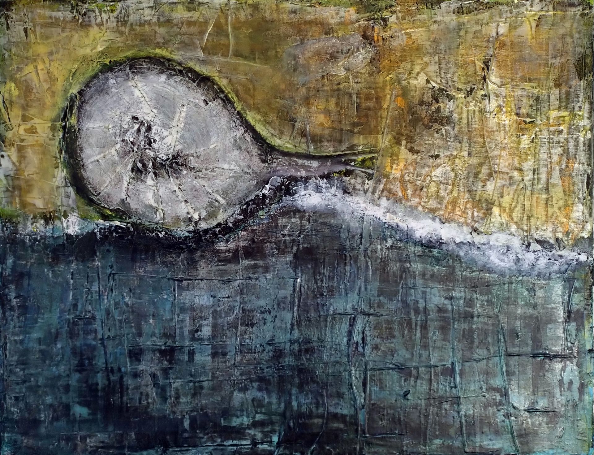 Abstrakte Arbeiten unter Verwendung von Acrylfarben auf Marmormehl und Kreide. Blattgold-Akzente – für Augenblicke, in die die Seele frei eintauchen kann.