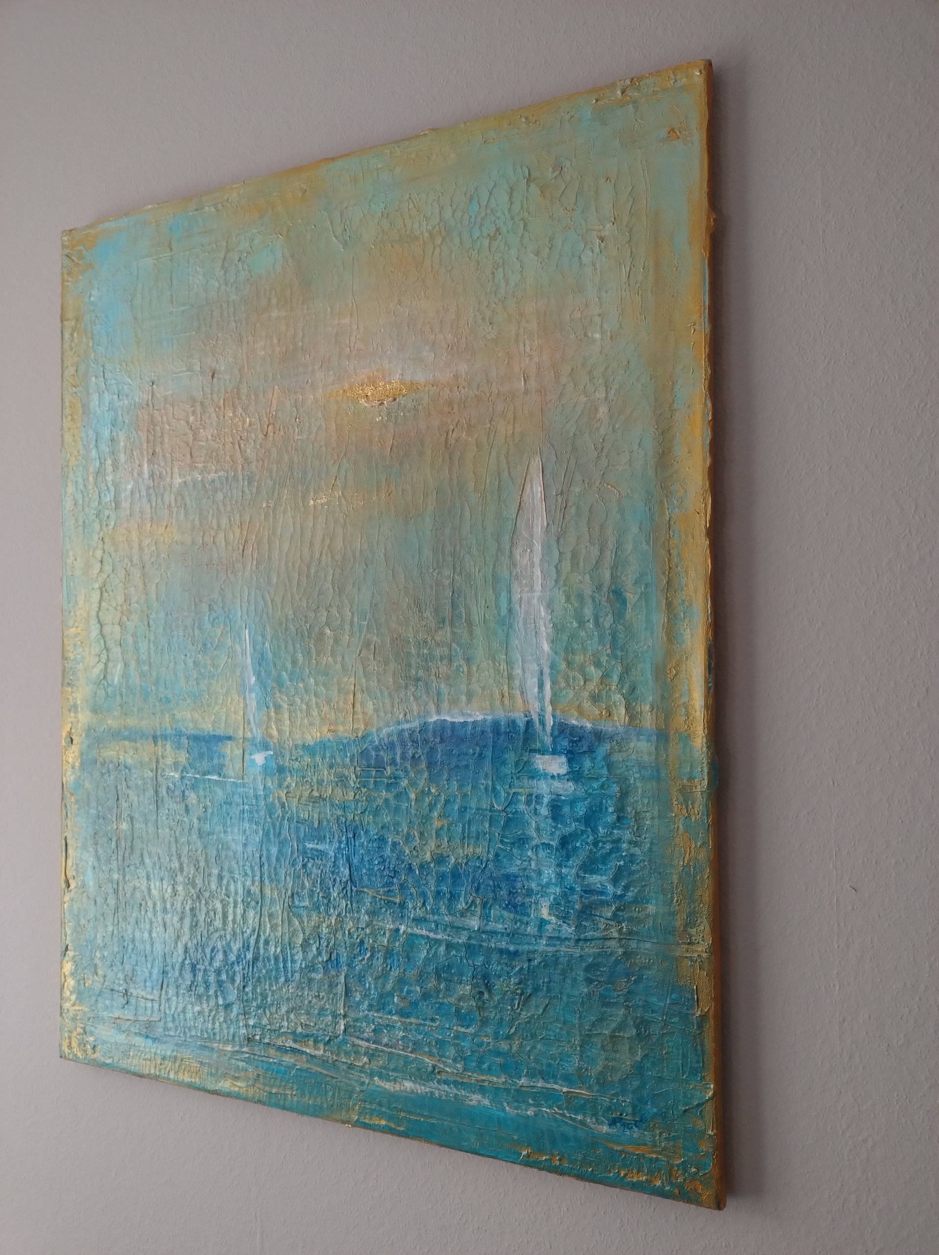 Es war Anfang des Jahres 2025, als das Wetter hier bei uns in Schleswig-Holstein mit viel Sonnenschein und Regen einen benachbarten Landwirt sehr freute: "Es regnet Gold", sagt er. Das hat mich wohl tief beeindruckt, denn die nächsten beiden Motive, die sich auf meiner Leinwand zeigten waren Regnet Gold I und II (s.u.).