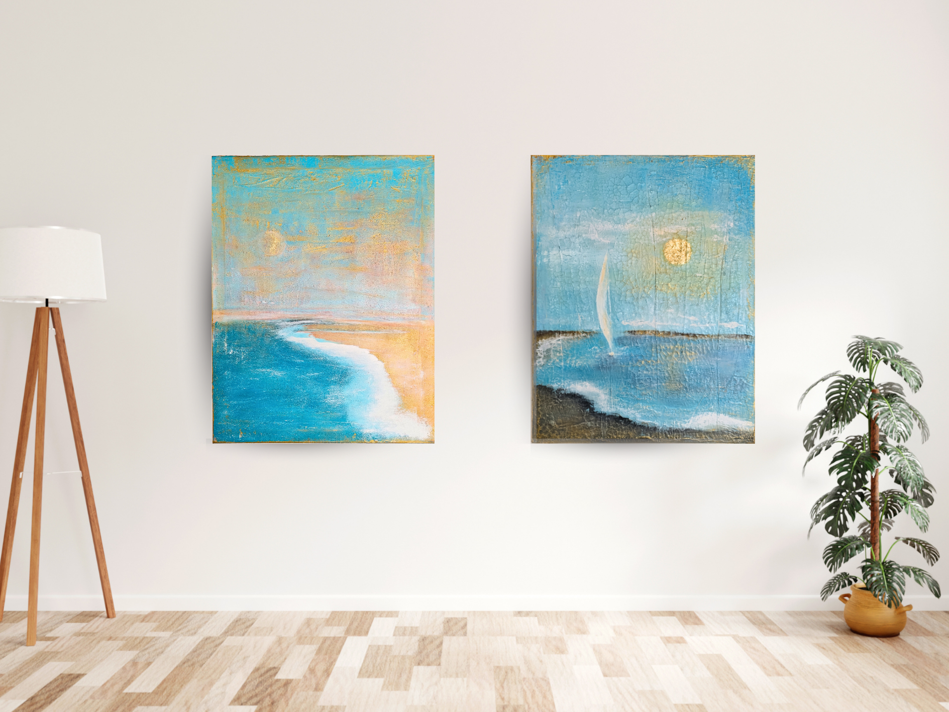 Sie erzählen von Sehnsucht, sind gemalt, aber irgendwie auch aus dem Boden gewachsen. Mit Gold, Sand, Marmormehl und Putz.